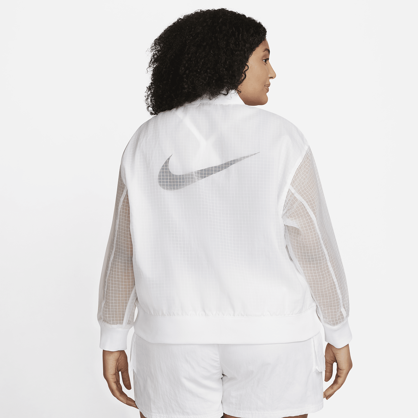 In this lightweight, loose-fitting bomber, you can cover up without hiding your style. Smooth ripstop fabric is structured but sheer, so you can let your favorite prints and colors shine through.